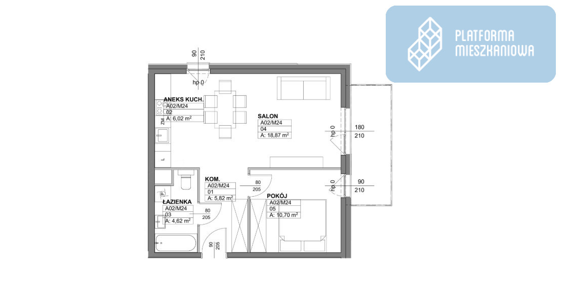 - Powierzchnia:46,03 m2