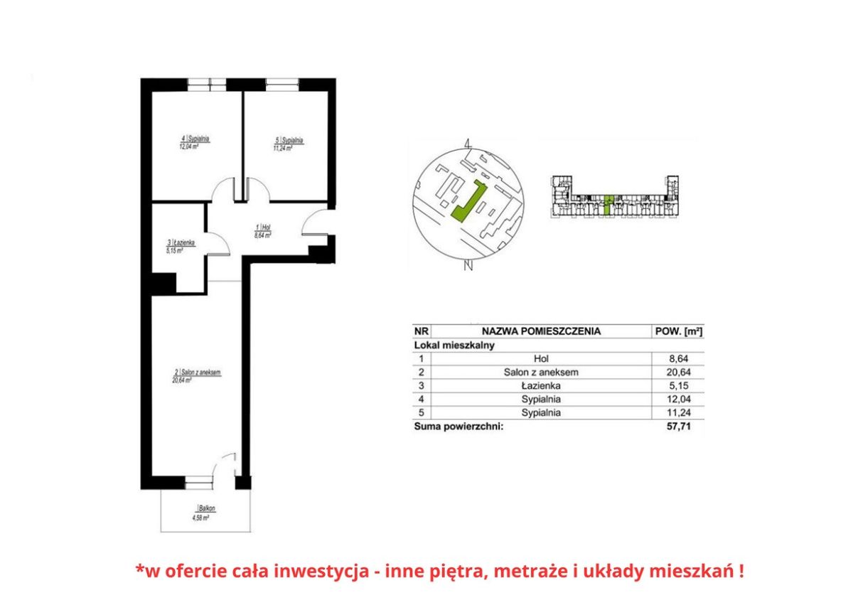 Oferowany lokal mieszkalny znajduje się na 2 piętrze budynku (dostępne inne piętra i układy) i składa się z następujących pomieszczeń: