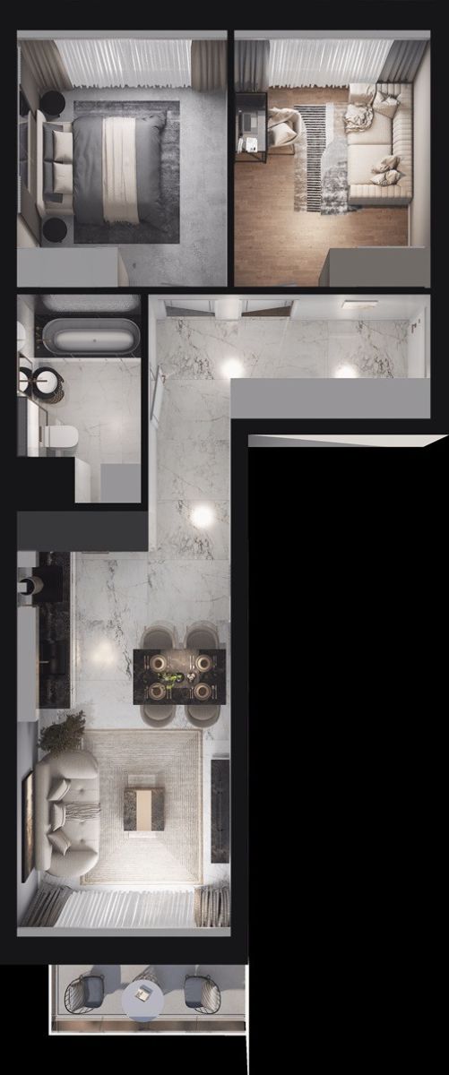 Rzut oraz wizualizacje w ofercie przedstawiają przykładowy sposób aranżacji wnętrza. Powyższa oferta ma charakter informacyjny i nie stanowi oferty handlowej w rozumieniu art. 66 §1 Kodeksu Cywilnego.