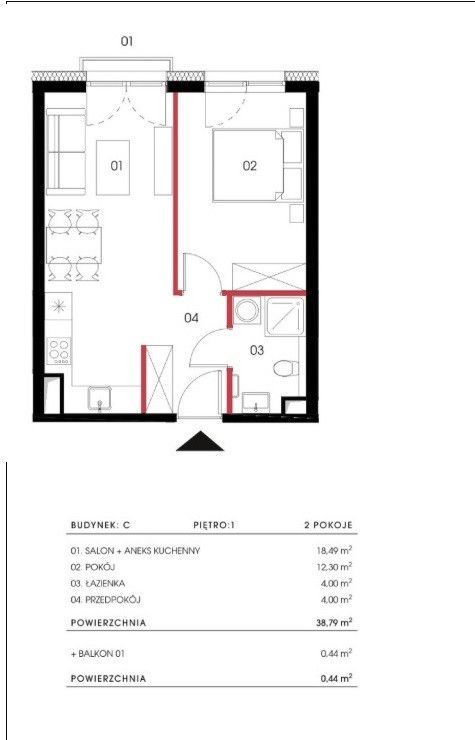 -1 sypialnia+ pokój dzienny z aneksem kuchennym