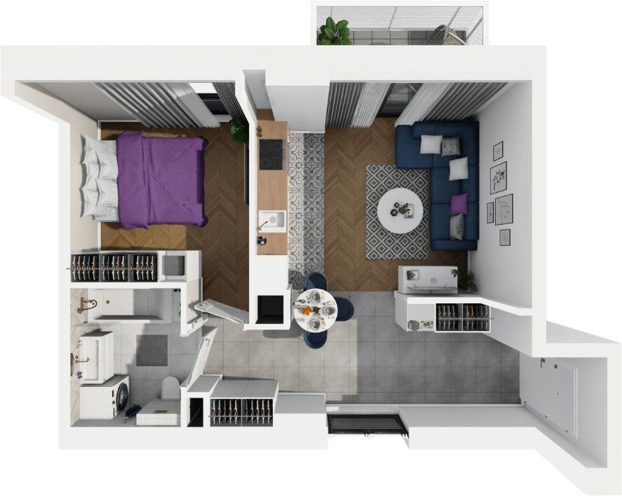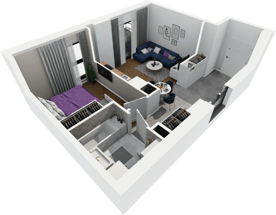 Rzut oraz wizualizacje w ofercie przedstawiają przykładowy sposób aranżacji wnętrza. Powyższa oferta ma charakter informacyjny i nie stanowi oferty handlowej w rozumieniu art. 66 §1 Kodeksu Cywilnego.