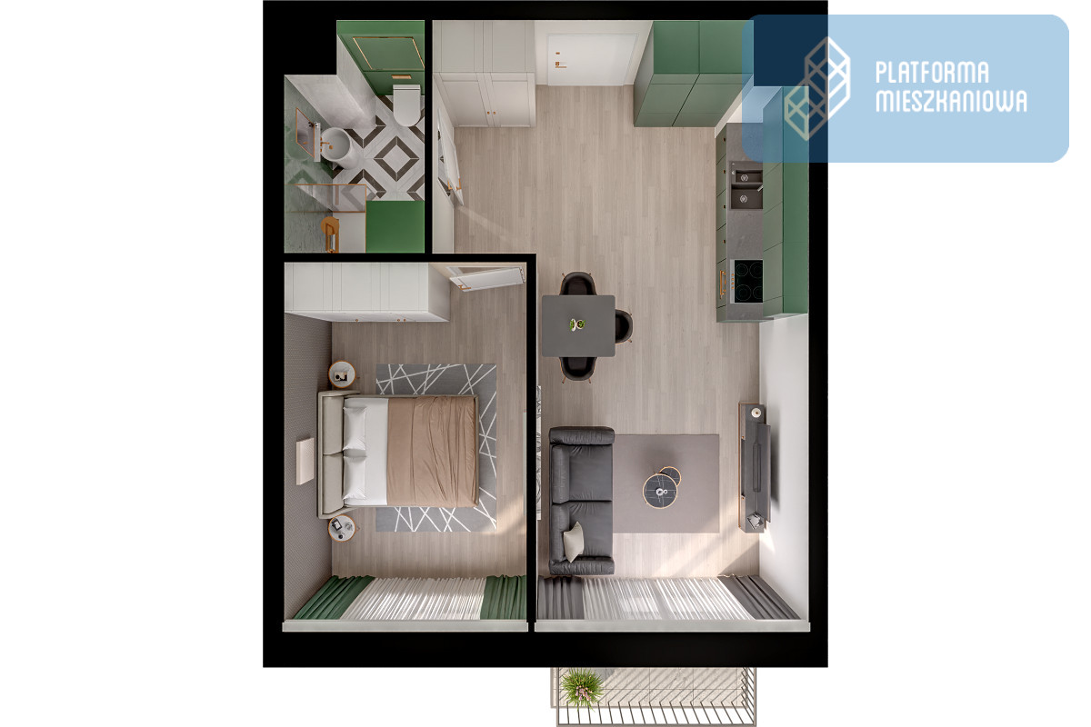 Wizualizacja na zdjęciach przedstawia przykładowy sposób aranżacji wnętrza. Powyższa oferta ma charakter informacyjny i nie stanowi oferty handlowej w rozumieniu art. 66 §1 Kodeksu Cywilnego.