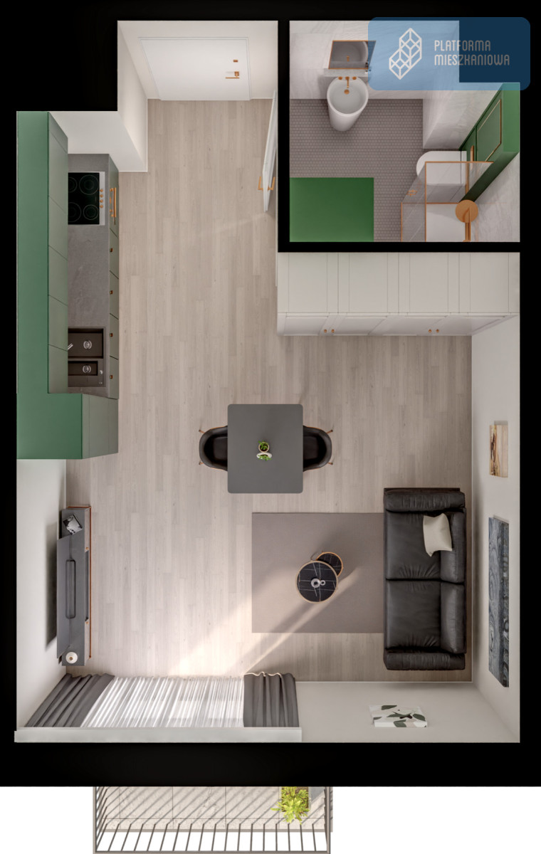 Wizualizacje w ofercie przedstawiają przykładowy sposób aranżacji wnętrza. Powyższa oferta ma charakter informacyjny i nie stanowi oferty handlowej w rozumieniu art. 66 1 Kodeksu Cywilnego.