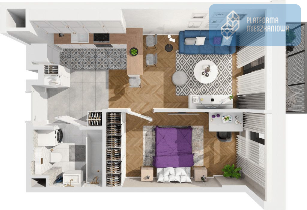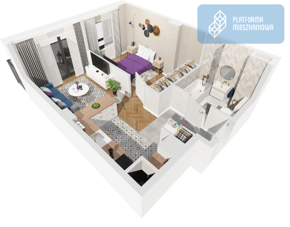 Wizualizacje przedstawione w ofercie są ukazują przykładowe aranżacje wnętrza. Powyższa oferta ma charakter informacyjny i nie stanowi oferty handlowej w rozumieniu art. 66 §1 Kodeksu Cywilnego.