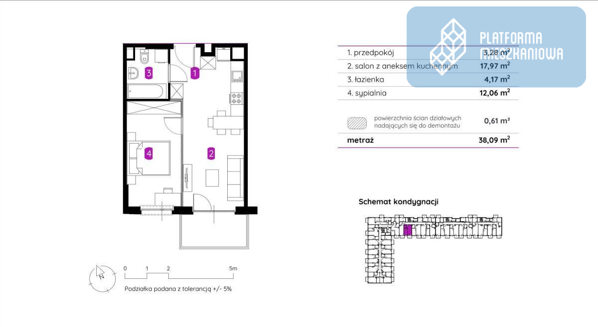 Kompaktowe 2 pokojowe mieszkanie o pow. 38,09 m2 z balkonem w nowoczesnej inwestycji położonej w bliskiej odległości od ronda Starołęka i Ronda Żegrze.