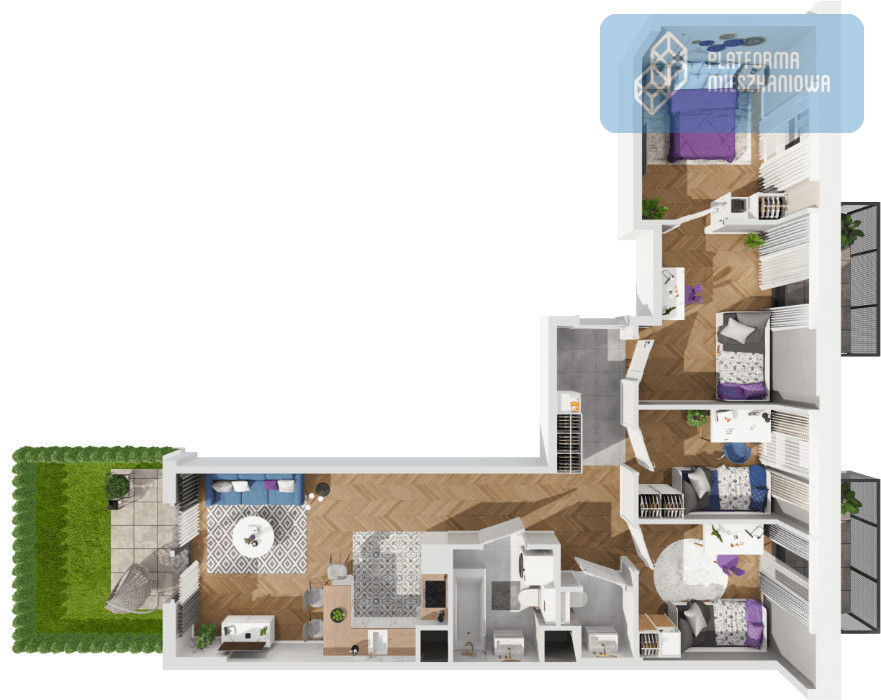 Wizualizacje przedstawione w ofercie są ukazują przykładowe aranżacje wnętrza. Powyższa oferta ma charakter informacyjny i nie stanowi oferty handlowej w rozumieniu art. 66 §1 Kodeksu Cywilnego.