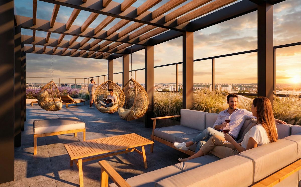Mieszkańcy mają dostęp do tarasu widokowego na dachu.