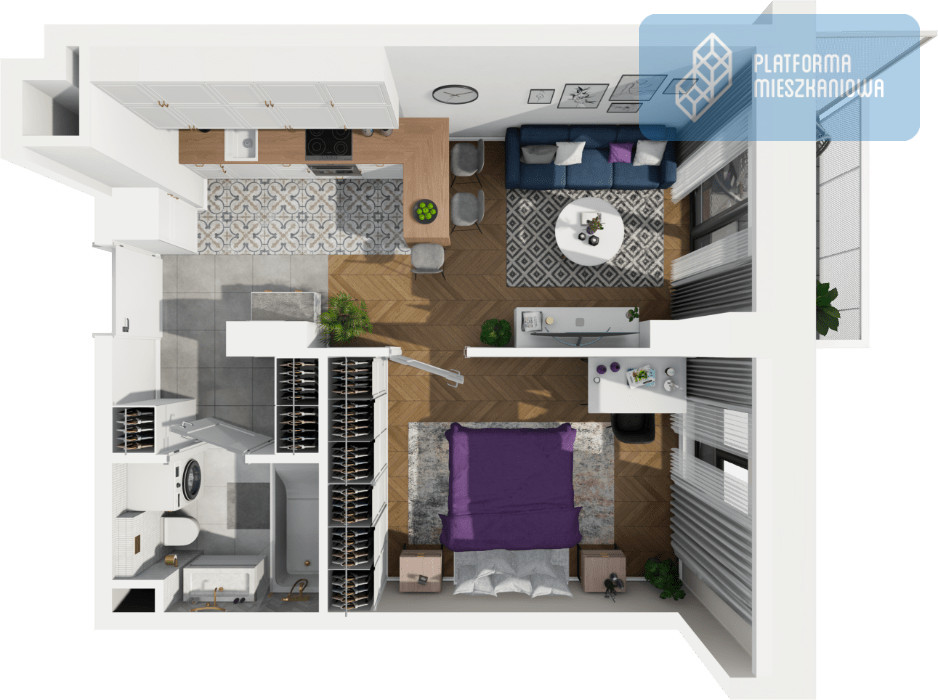 Wizualizacje przedstawione w ofercie są ukazują przykładowe aranżacje wnętrza. Powyższa oferta ma charakter informacyjny i nie stanowi oferty handlowej w rozumieniu art. 66 §1 Kodeksu Cywilnego.
