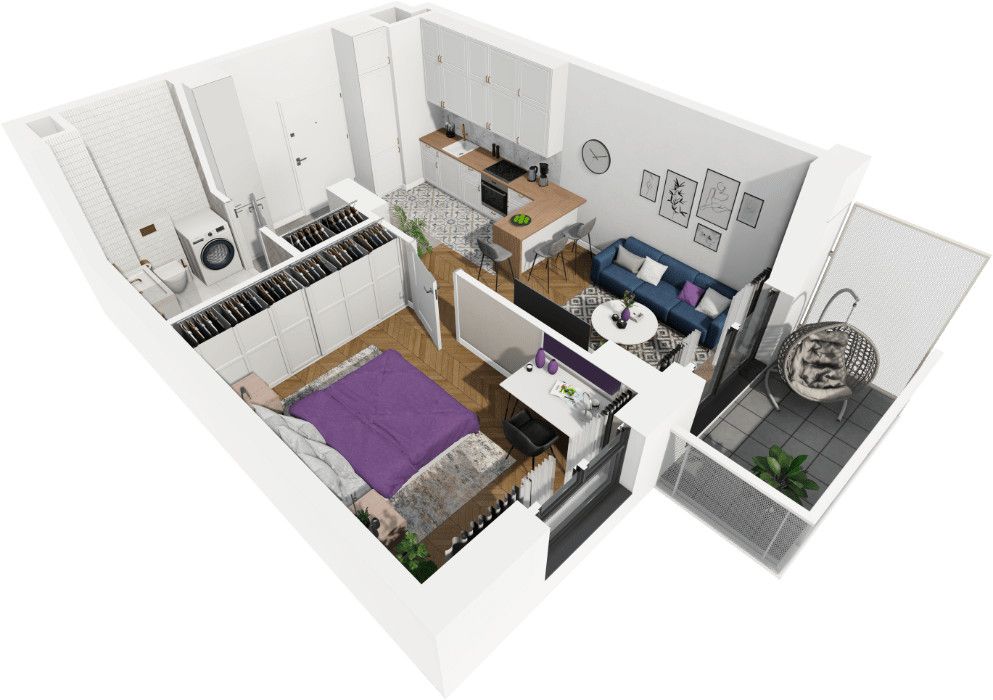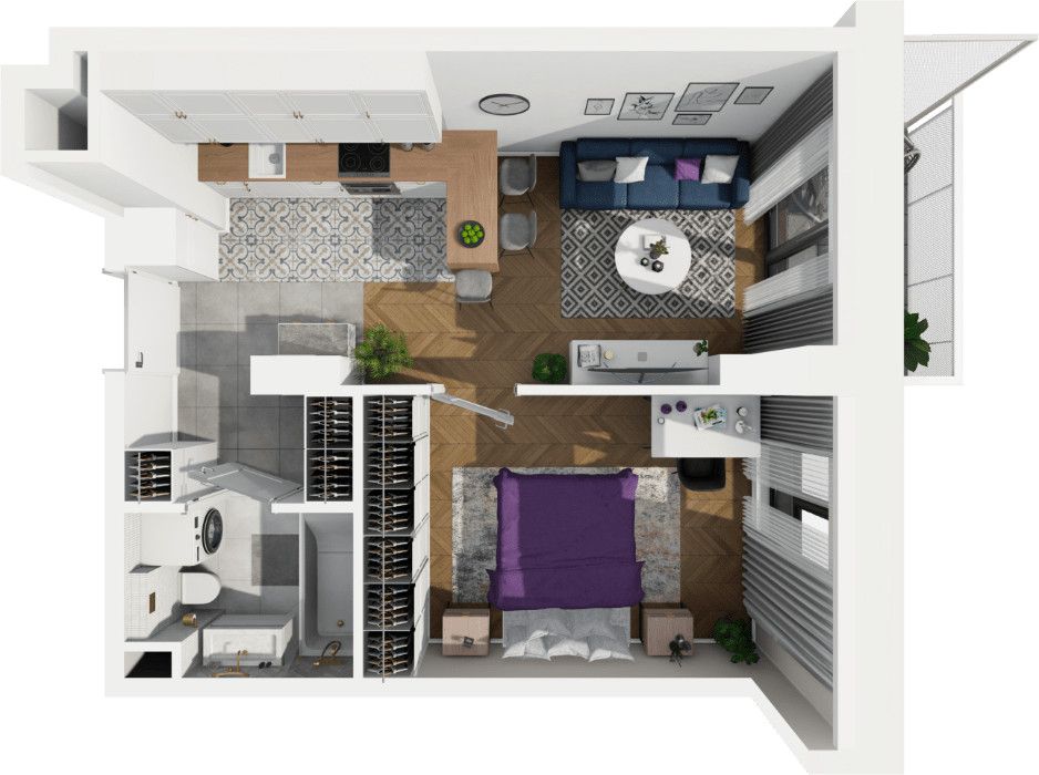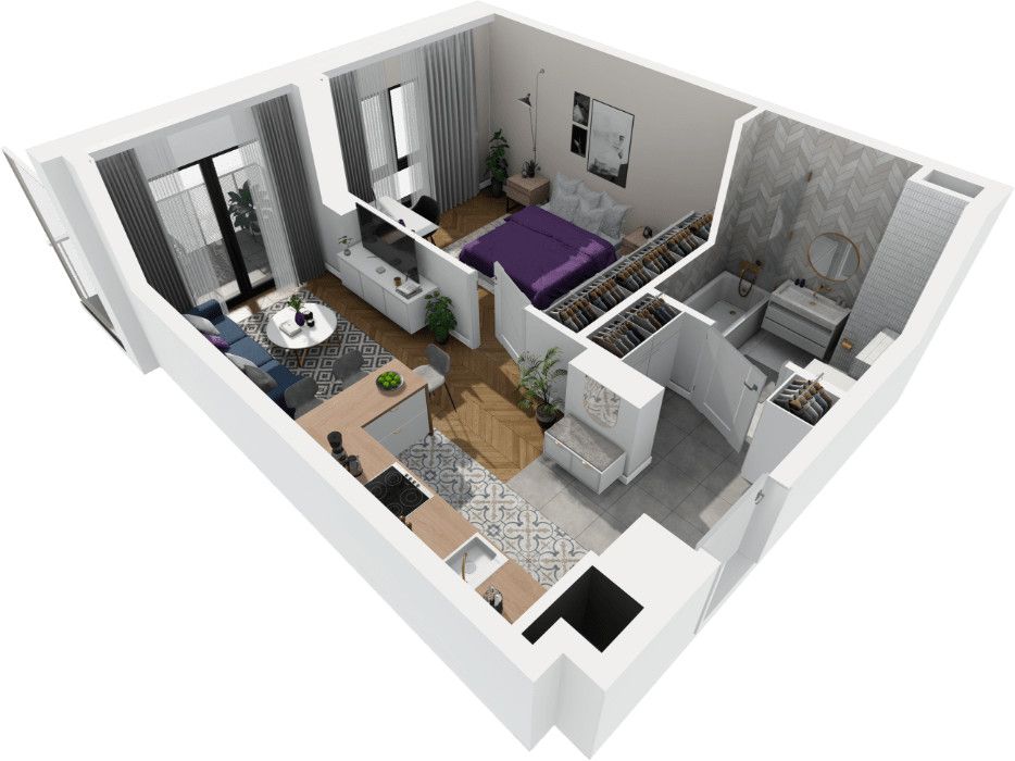 Rzut oraz wizualizacje w ofercie przedstawiają przykładowy sposób aranżacji wnętrza. Powyższa oferta ma charakter informacyjny i nie stanowi oferty handlowej w rozumieniu art. 66 §1 Kodeksu Cywilnego.