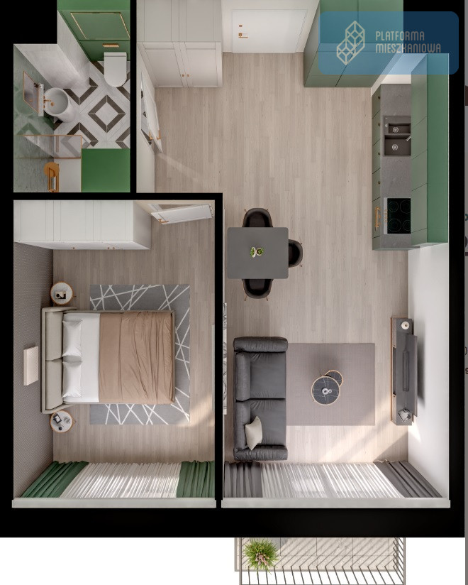Wizualizacje w ofercie przedstawiają przykładowy sposób aranżacji wnętrza. Powyższa oferta ma charakter informacyjny i nie stanowi oferty handlowej w rozumieniu art. 66 1 Kodeksu Cywilnego.