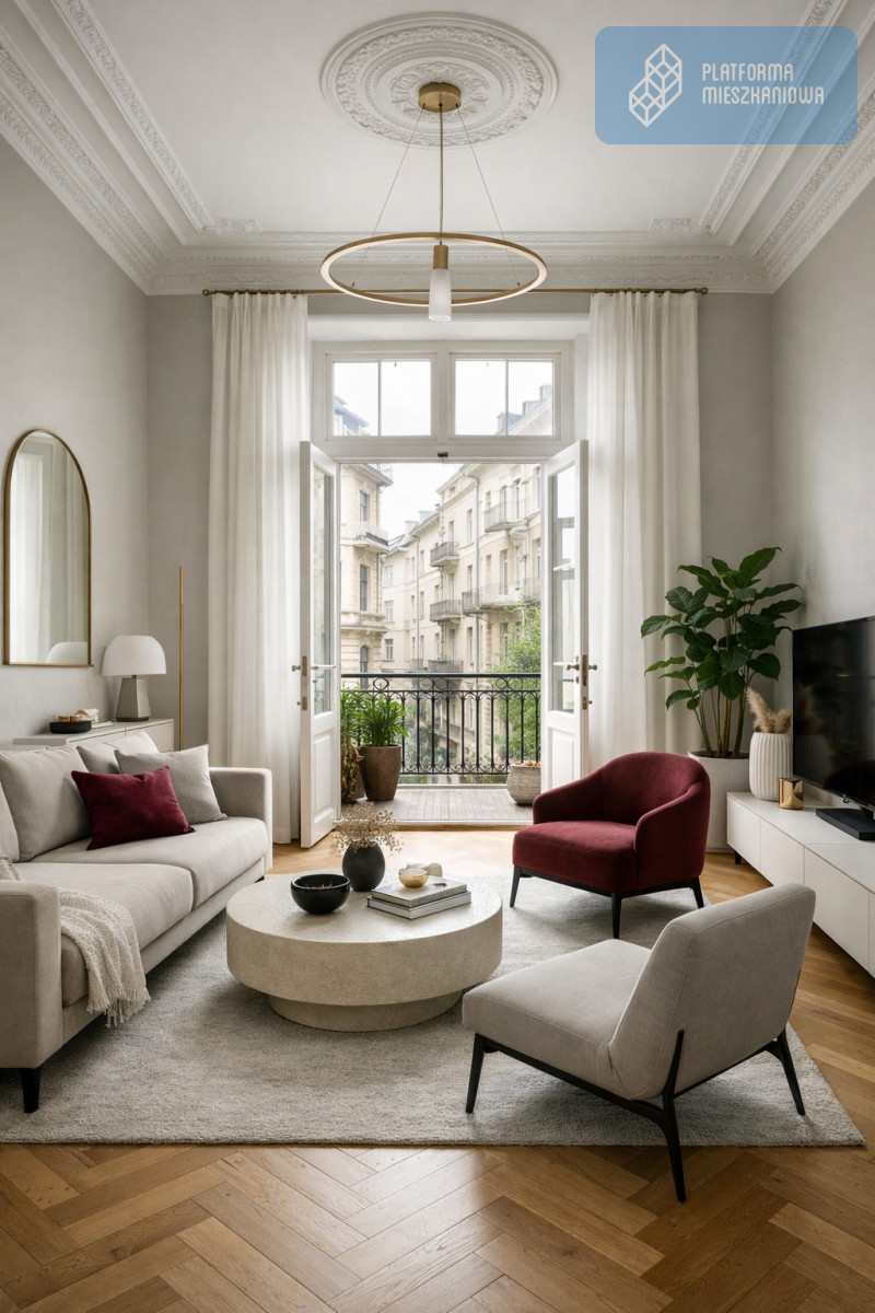 Ogromnym atutem mieszkania w kamienicy są wysokie sufity co sprawia, że przestrzeń wydaje się jaśniejsza i większa.