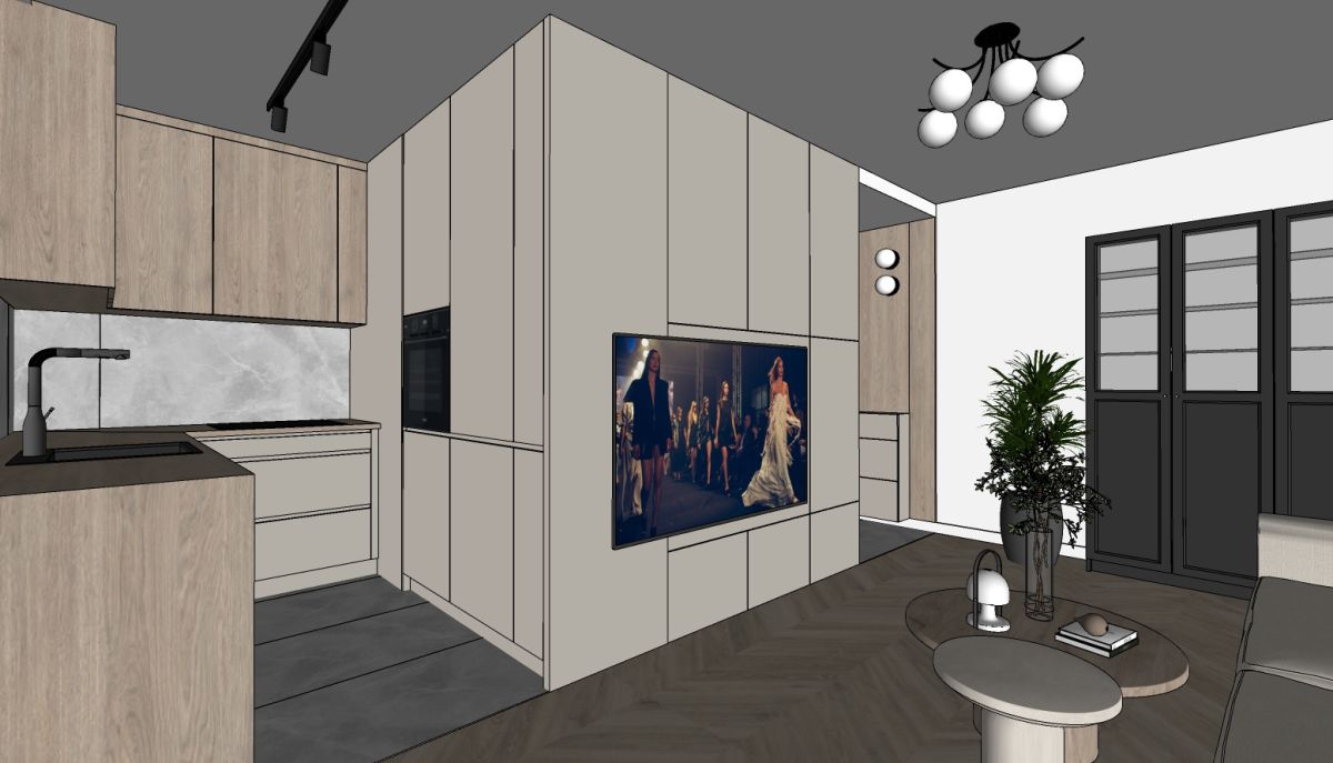 - kuchnia z oknem, do której wchodzimy z salonu