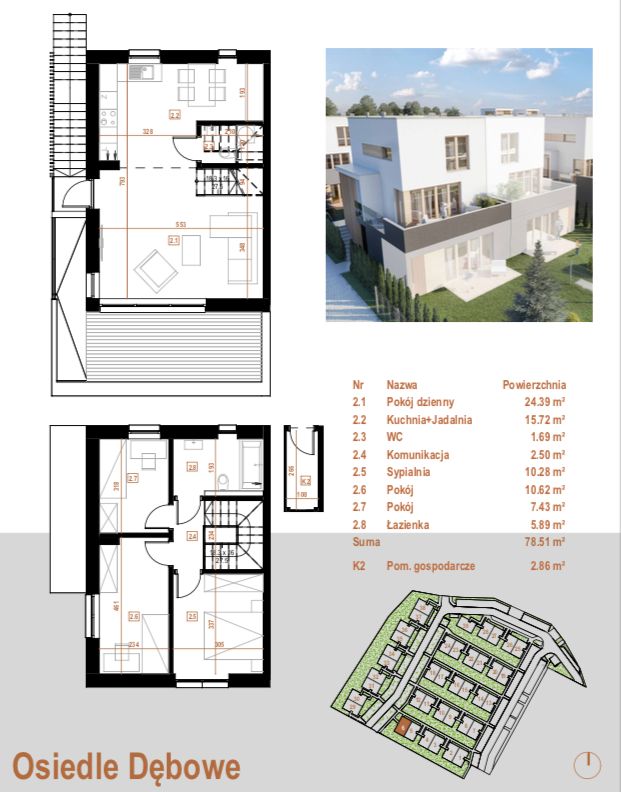 78,5 m2 komfortowej przestrzeni mieszkalnej - Salon z aneksem kuchennym, trzy ustawne sypialnie oraz wc, i osobna łazienka.