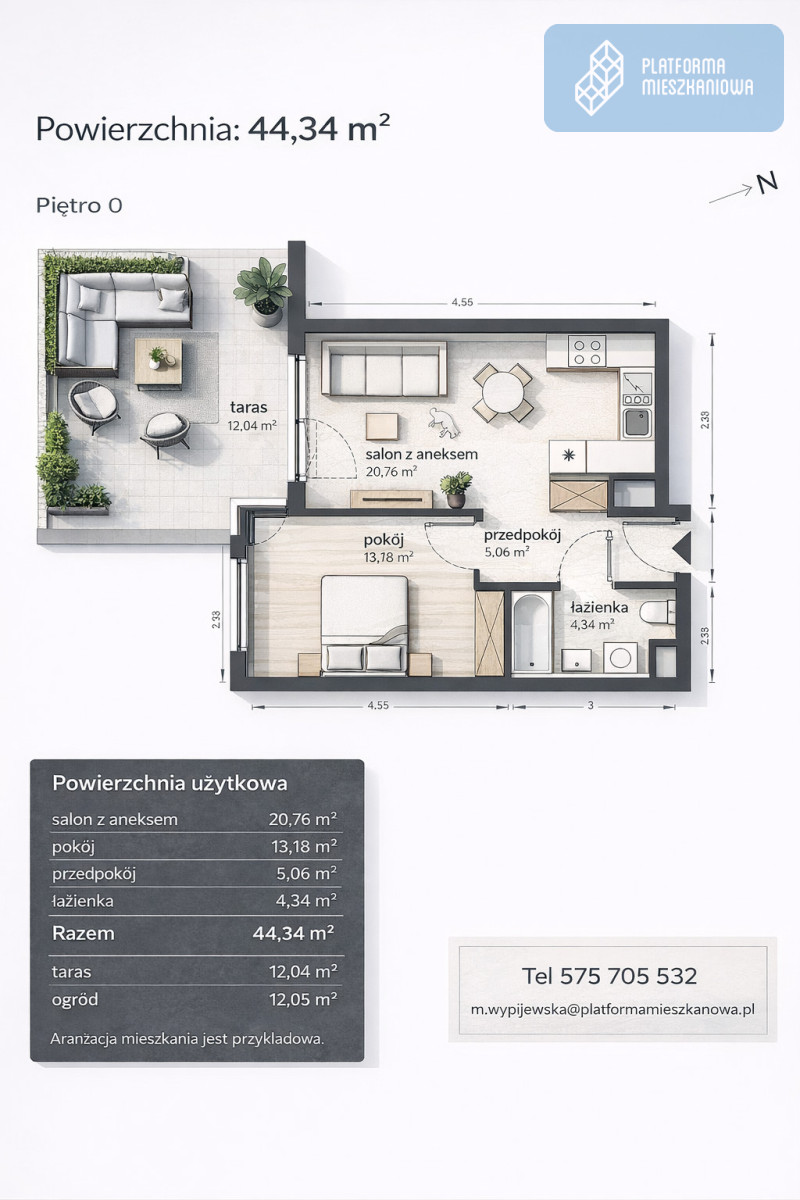- powierzchnia: 44,34m2