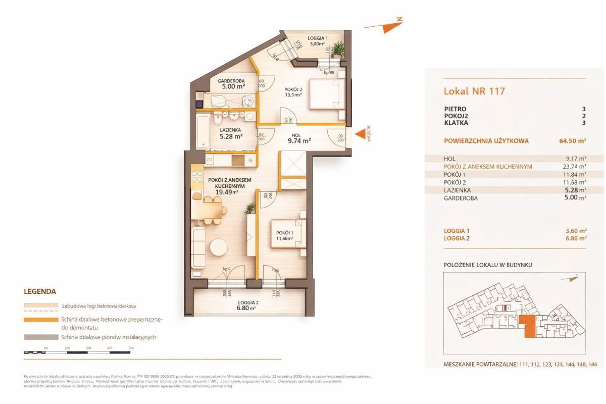 ✔ 3 pokoje + 2 loggie 5.80m² + 3.60m² z otwieraną zabudową szklaną (dodatkowa przestrzeń użytkowa)