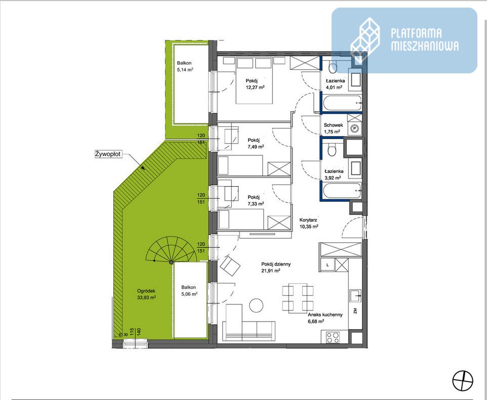 Dwa Balkony (5,14 m² oraz 5,06 m²): Zapewniają dodatkową przestrzeń do wypoczynku i dostęp do świeżego powietrza z różnych części mieszkania.