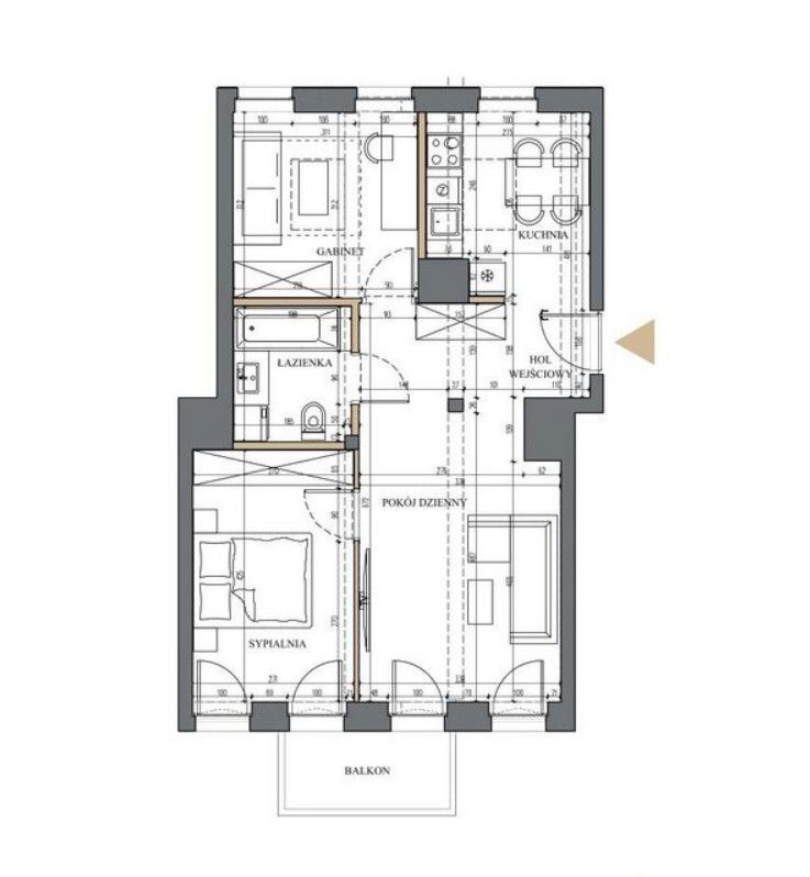 Liczba pokoi: 3 (salon z aneksem + 2 sypialnie)