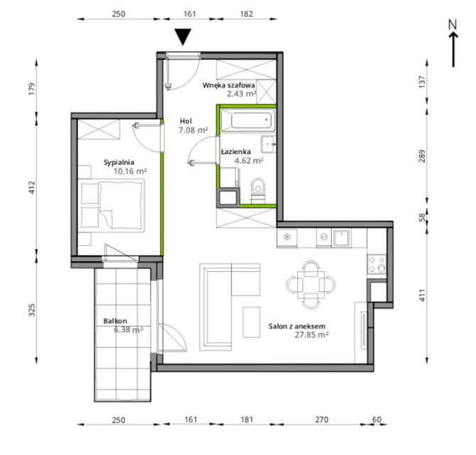 Sercem tego lokum jest funkcjonalny salon z aneksem kuchennym, który dzięki ekspozycji i dużym przeszkleniom tonie w naturalnym świetle. To przestrzeń zaprojektowana z myślą o komforcie - idealna zarówno do kreatywnej pracy, jak i wieczornego relaksu po intensywnym dniu w mieście.