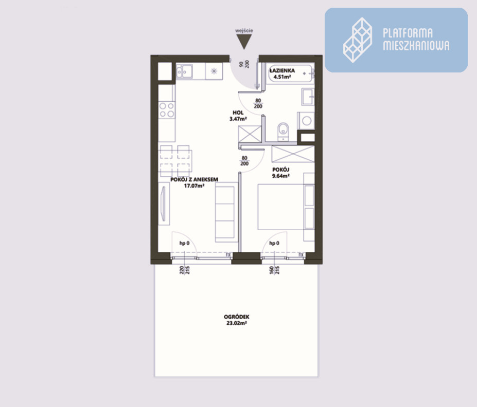 - Pokój dzienny z aneksem kuchennym i wyjściem na balkon