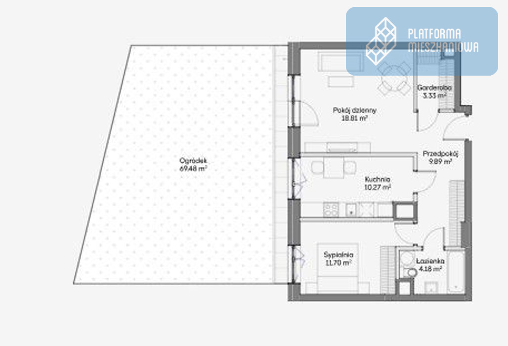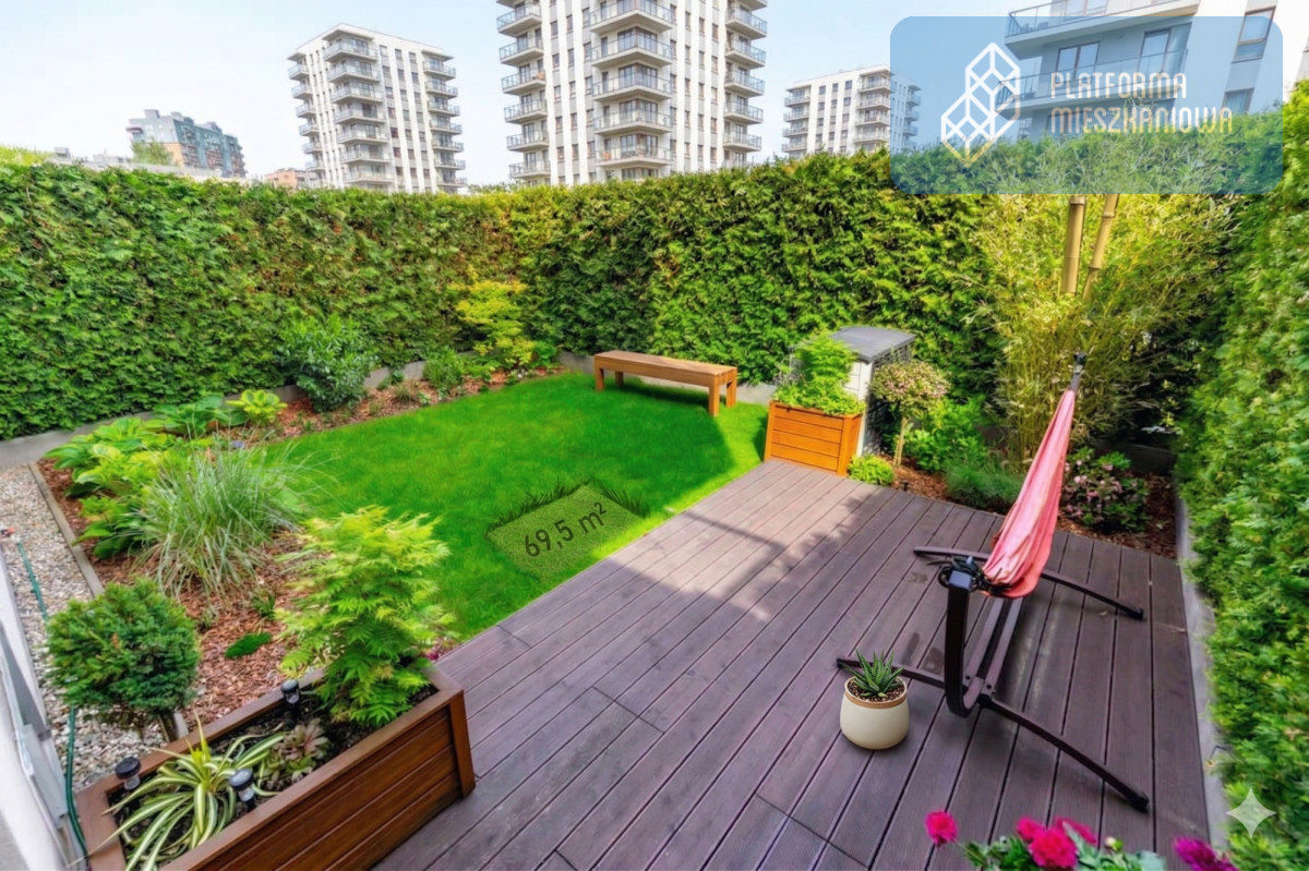 - Niesamowite 69,5 m² Twojej prywatnej zieleni, większej niż samo mieszkanie.