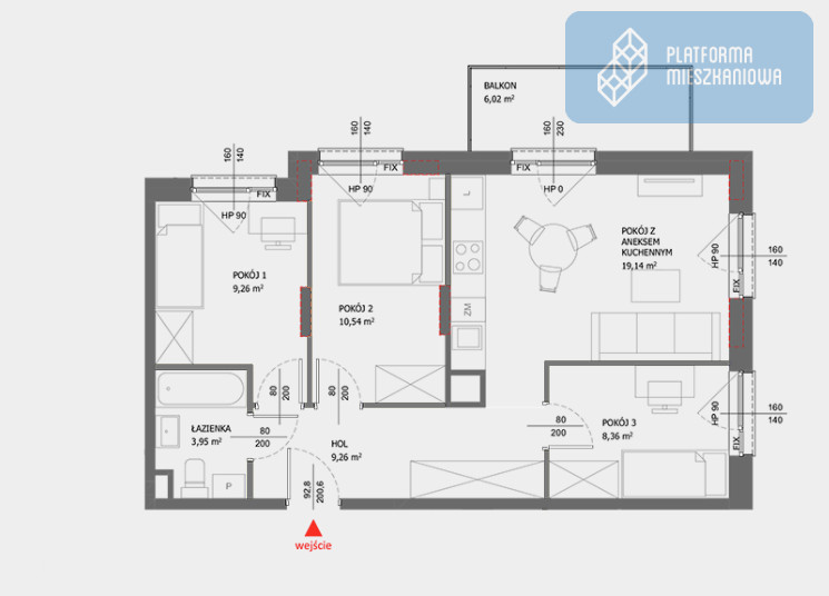 MIESZKANIE 4-POKOJOWE - 60,51 m² + BALKON 6,02 m²
