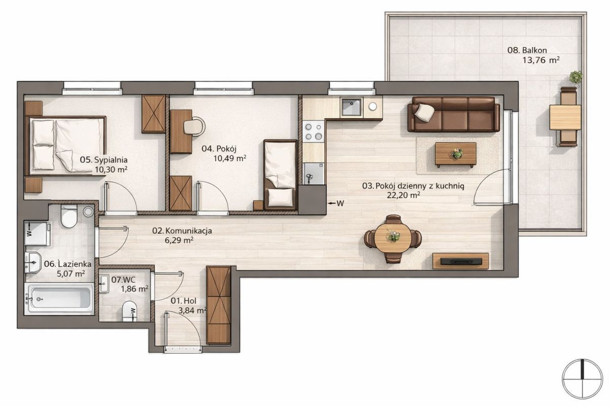 - narożny balkon 13,76 m2