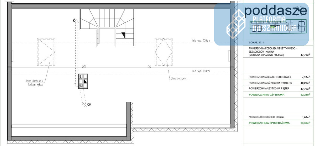 Dodatkowo poddasze z oknami i zamontowanymi schodami:
