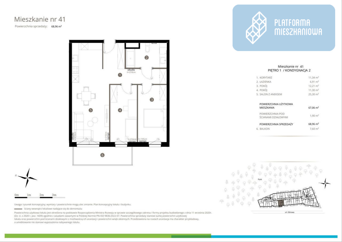Ten lokal to 68,96 m² czystej funkcjonalności na pierwszym piętrze. Tutaj prestiż Wilanowa łączy się z układem, który nie uznaje kompromisów.