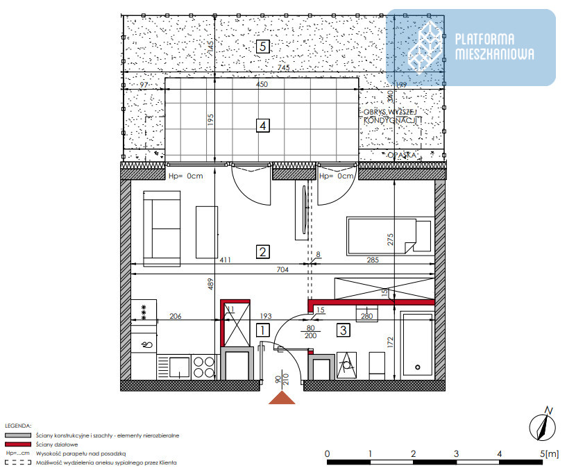 • funkcjonalny układ 1-pokojowy z wydzieloną sypialnią