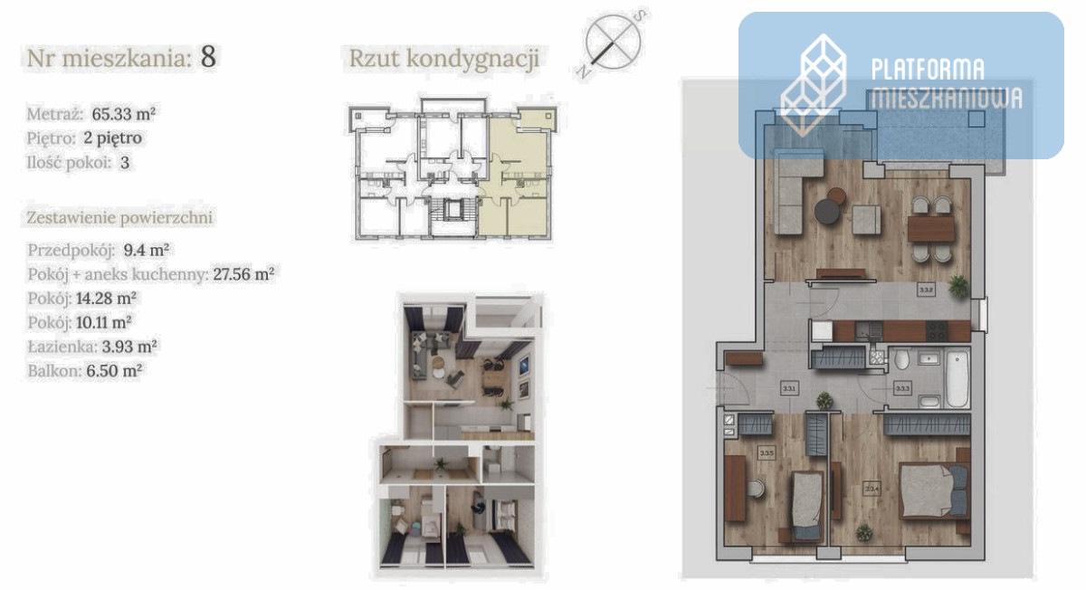 powierzchnia użytkowa: 65,33 m²