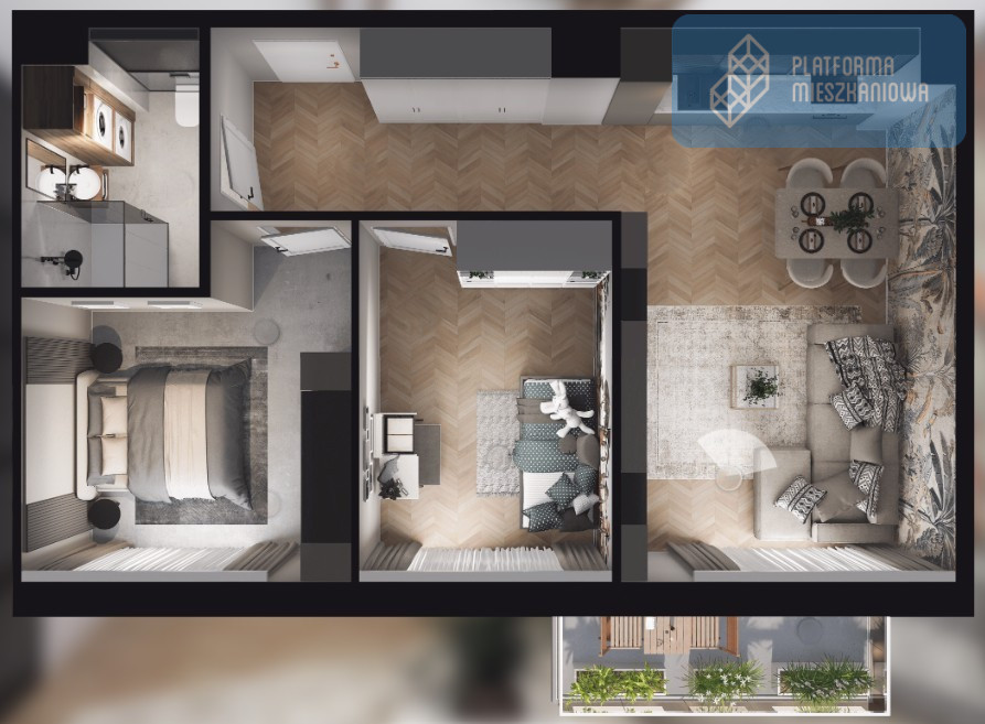*Wizualizacja na zdjęciu przedstawia przykładowy sposób aranżacji wnętrza. Powyższa oferta ma charakter informacyjny i nie stanowi oferty handlowej w rozumieniu art. 66 §1 Kodeksu Cywilnego.