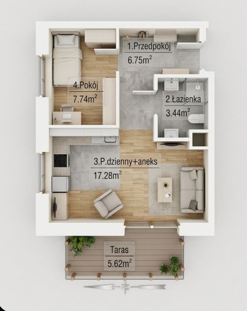 2-pokojowe mieszkanie | 42,91 m2 | trzecie piętro | wysoki standard