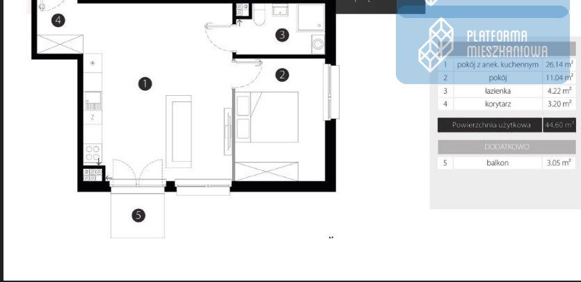 Oferuję przestronne i funkcjonalne mieszkanie 2-pokojowe o powierzchni ponad 44 m², znajdujące się w nowoczesnym kompleksie mieszkaniowym składającym się z pięciu budynków.