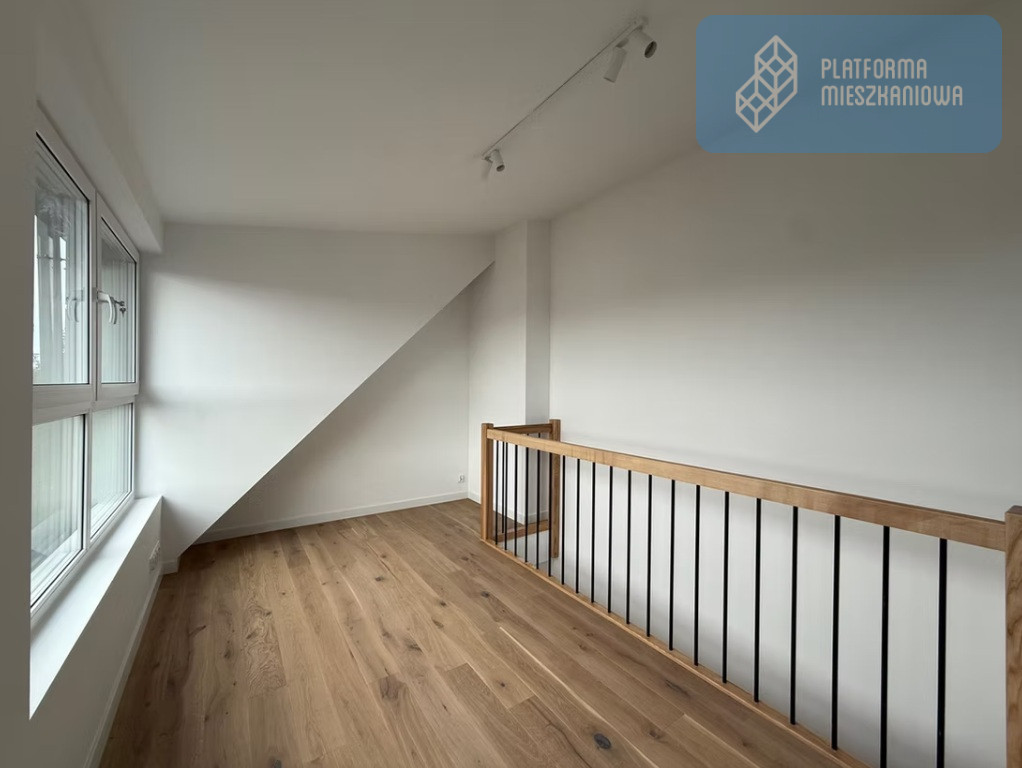 Antresola pozwala wygodnie wydzielić strefę dzienną i nocną, dzięki czemu mieszkanie jest bardzo funkcjonalne mimo kompaktowego metrażu.