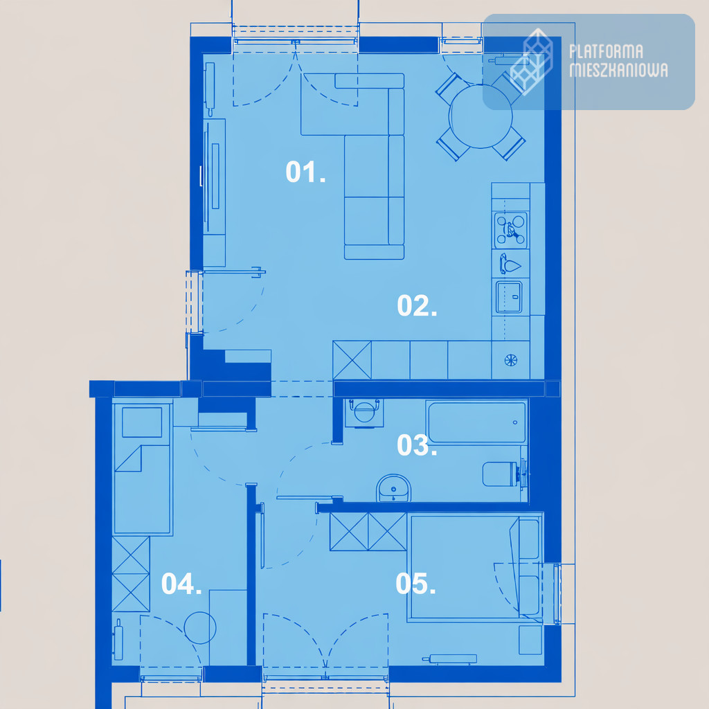 - Funkcjonalny i komfortowy układ pomieszczeń