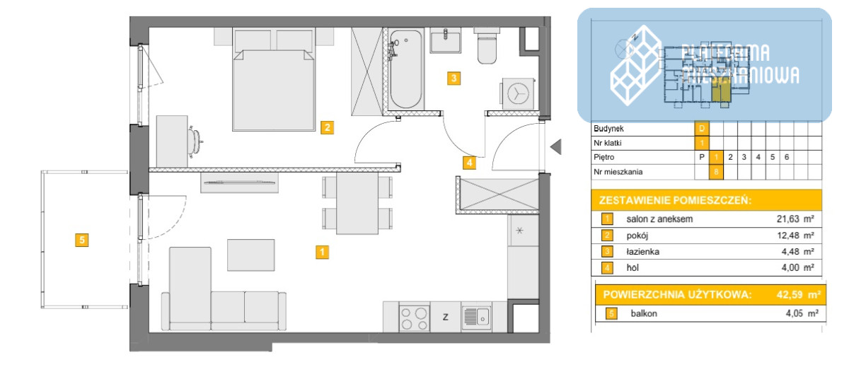 - Powierzchnia:42,59 m2