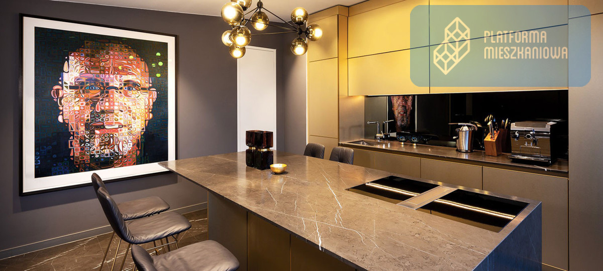 • nowoczesna architektura i materiały premium: klinkier, spieki Calacatta, mosiężne elementy,
