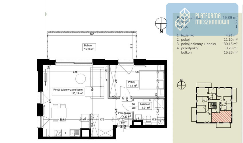 • Pokój dzienny + aneks: 30,15 m² - imponująca przestrzeń, idealna do aranżacji nowoczesnej strefy dziennej.