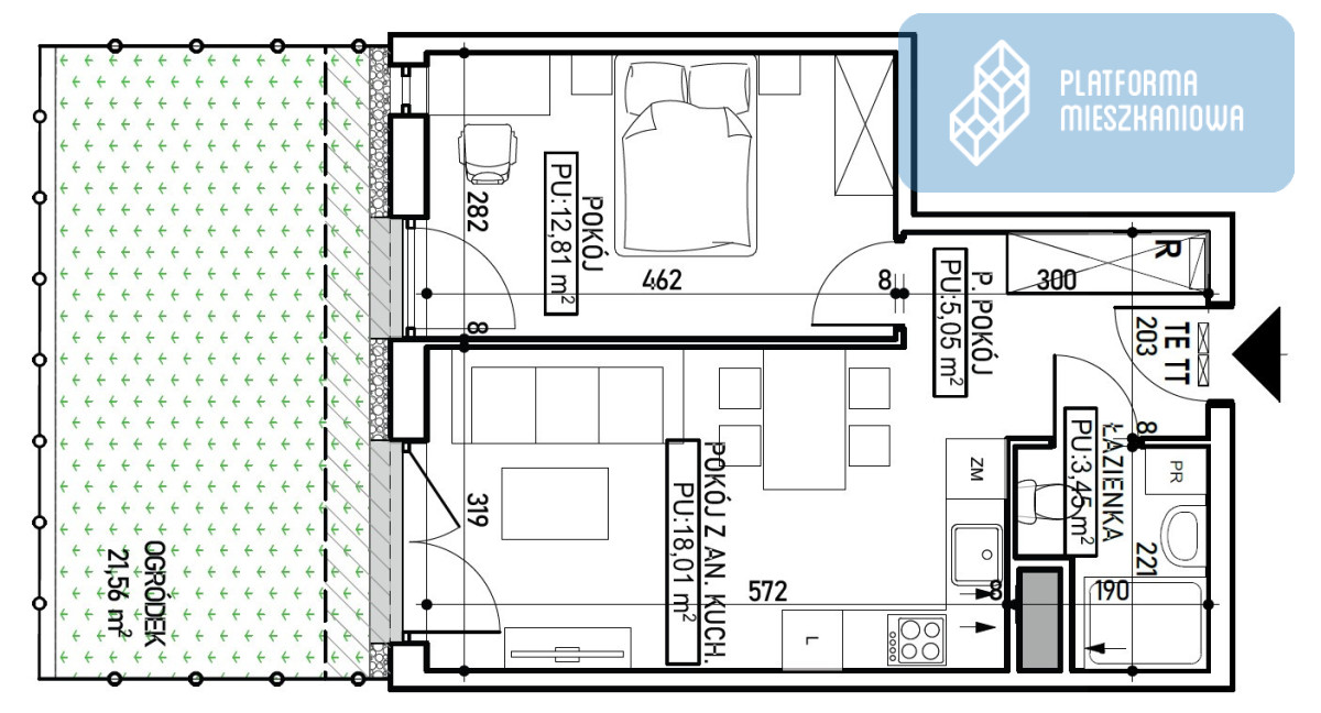 - Ogródek o pow. 21m2.