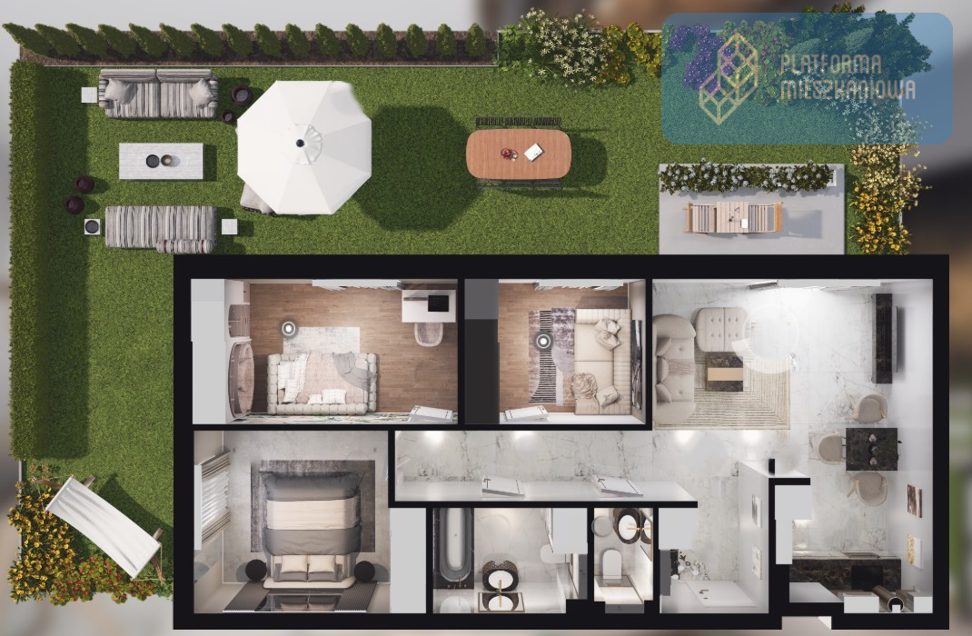 - Mieszkanie narożne z ogrodem o 93 m2,