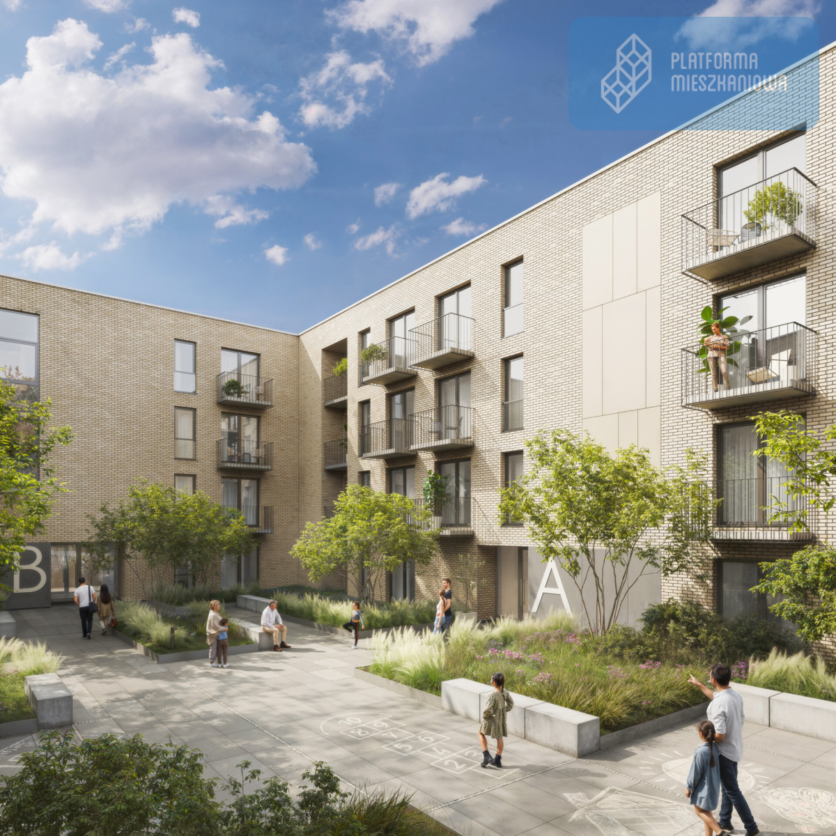 • Zielone, kameralne dziedzińce i wysoki komfort przestrzeni wspólnych