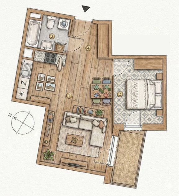 Rozkład pozwala funkcjonalnie wykorzystać każdy metr kwadratowy. To idealna przestrzeń dla singla lub pary. Mieszkanie sprawdzi się również jako inwestycja pod wynajem.