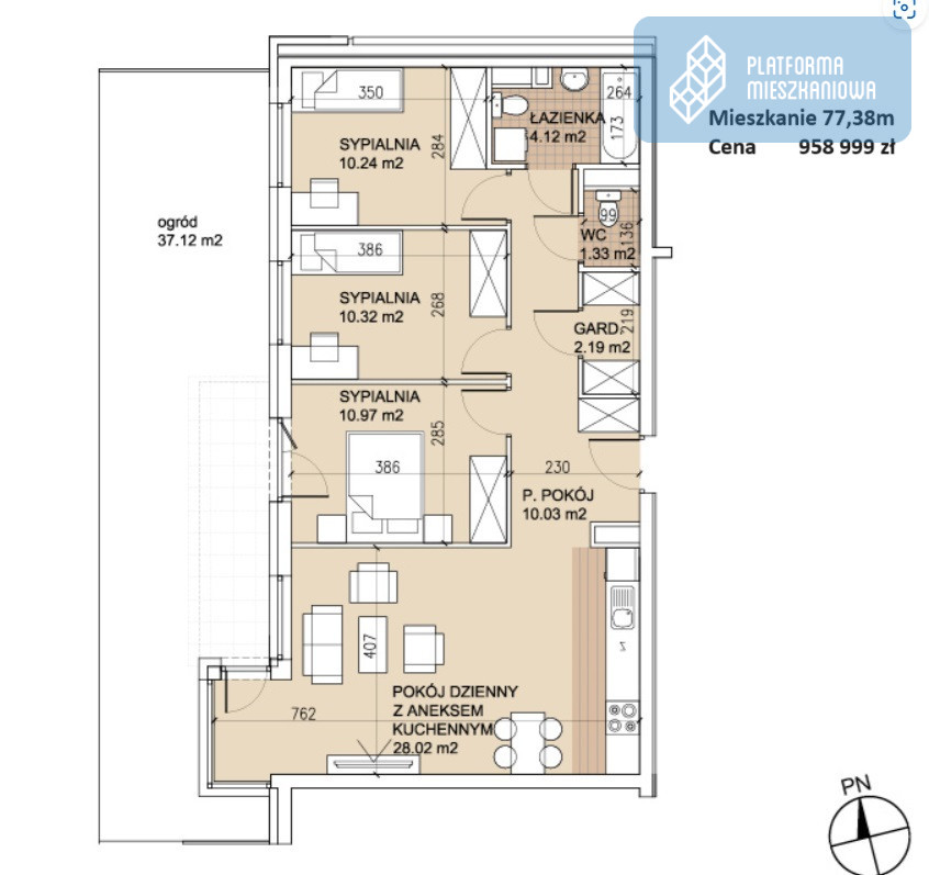 - Powierzchnia:77,38 m2