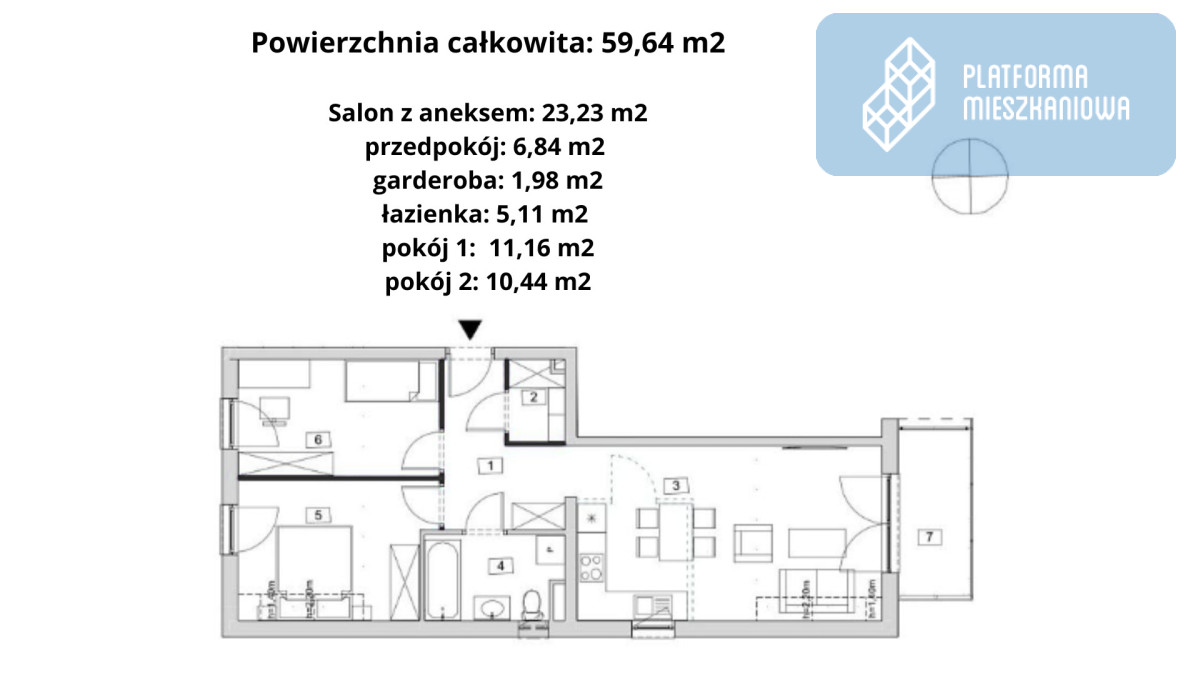 ✅59,64 m² funkcjonalnej przestrzeni,